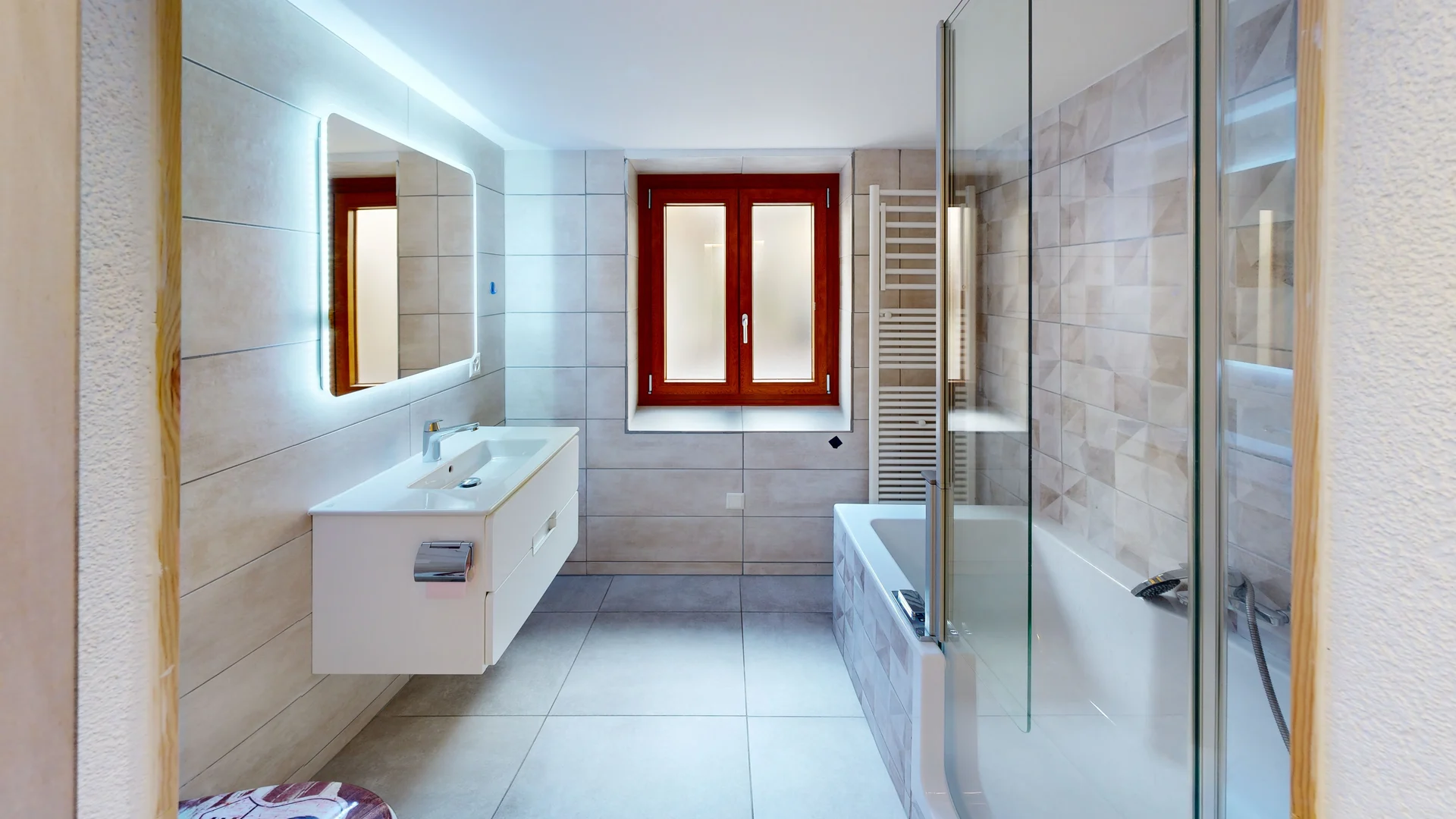 • Salle de bains avec baignoire