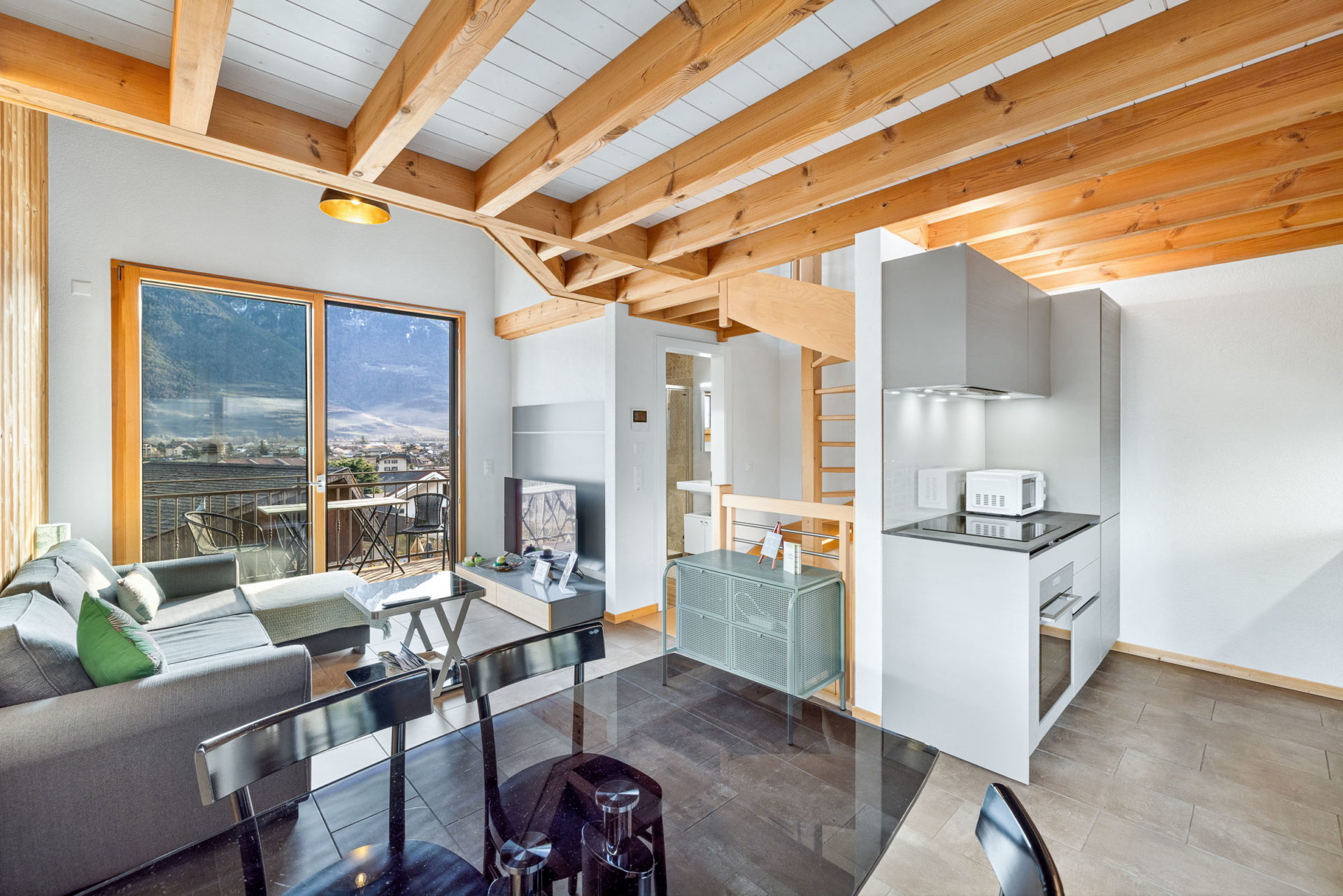 Bâtie en 2023 sur une parcelle de 170 m², je profite d’une exposition plein sud et d’une vue à couper le souffle sur les Alpes valaisannes.