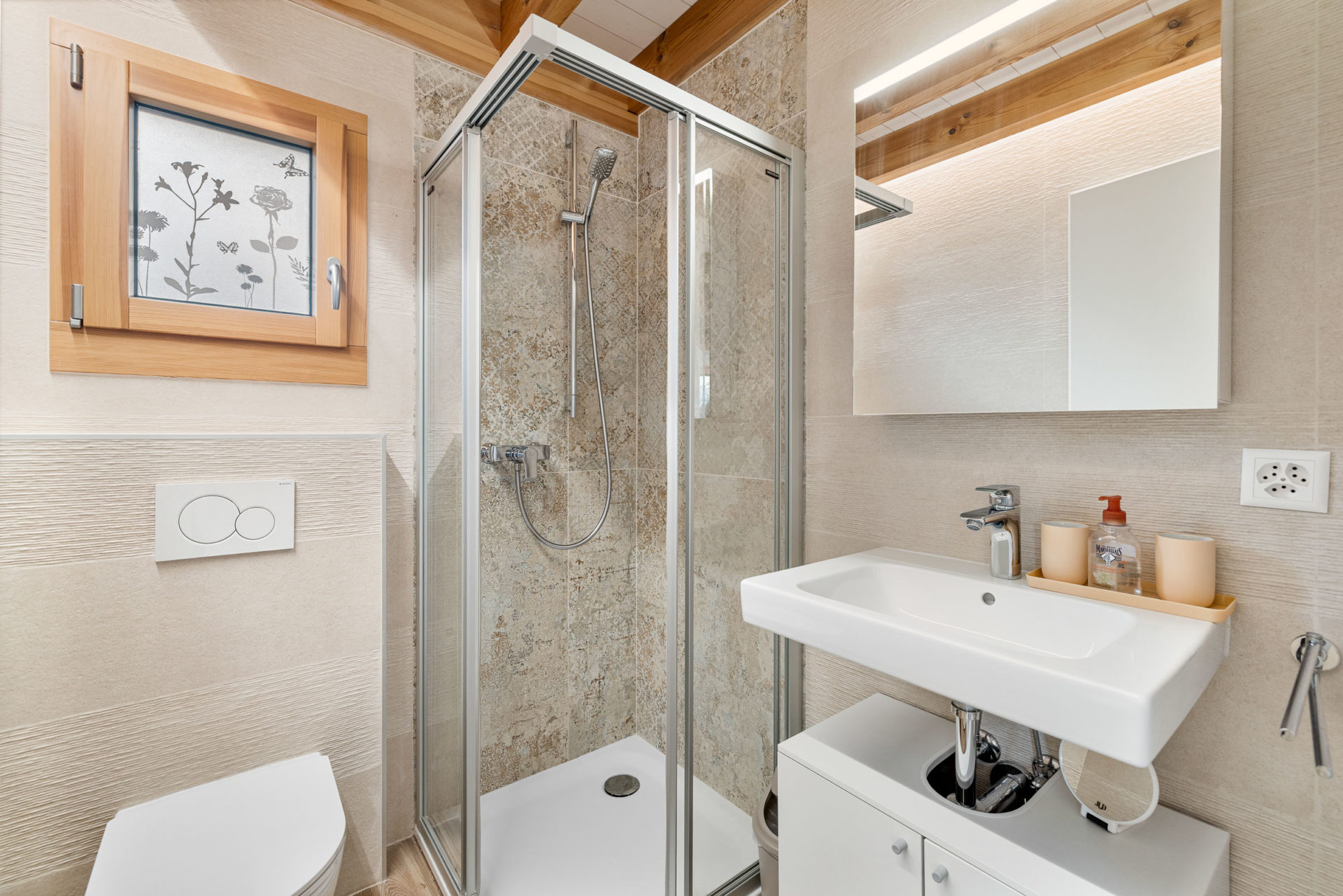 – Une salle de bain avec douche et WC